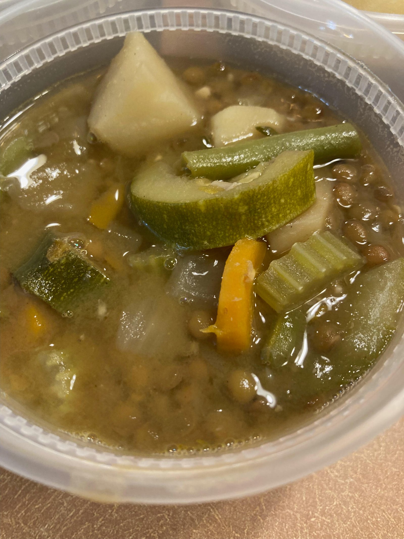 Lentils, Celery, Carrots, Potatoes, Green Beans, Squash, Fresh Rosemary, Thyme, Vegetable Broth, Maple Syrup, Salt, Pepper.